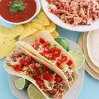 This tangy, scrumptious salsa chicken has been top of our list lately – and I love that it can be used for any number of my favorite Mexican meals. Burritos, quesadillas, nachos, taco salads – you name it!