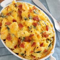 We’ve made macaroni and cheese a million and one ways, but I’ve always loved the idea of tossing in bacon and spinach. You know, because it’s a healthy choice for all. Right? Let’s go with yes.