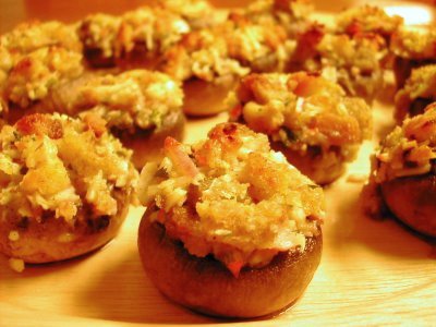 Stuffed mushrooms are one of those bite-sized wonders that you just can’t afford NOT to make for a party or casual get-together. Everyone will love them. And I mean everyone as in, no matter how many people you have over and mushrooms you plan to make, you’ll probably have to make many more. I challenge that even the guest who detests mushrooms could fall in love with a fungus plump with this buttery bread crumb and creamy crab mixture with a kick of subtle spice. People, these are so damn good.