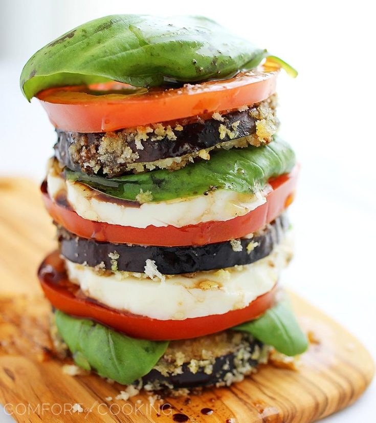 Wow, what a gorgeous tower! I love the crispy eggplant you added to these caprese stacks!