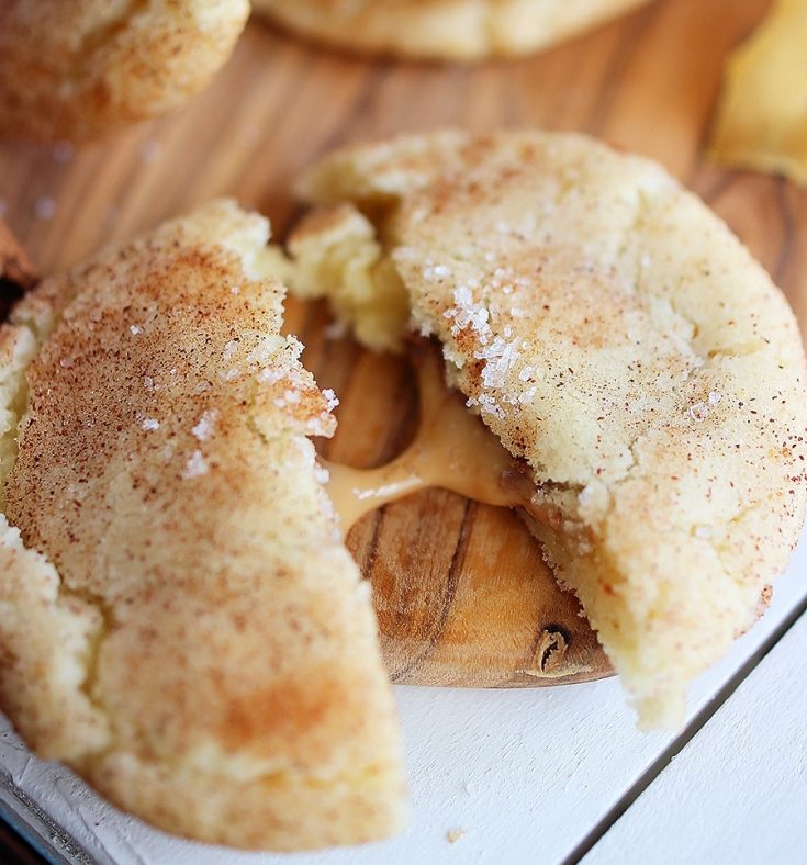 Snickerdoodles were my favorite cookies to begin with, but stuffing them with gooey, chocolate-coated caramel? Well, that’s just taken it over the top!