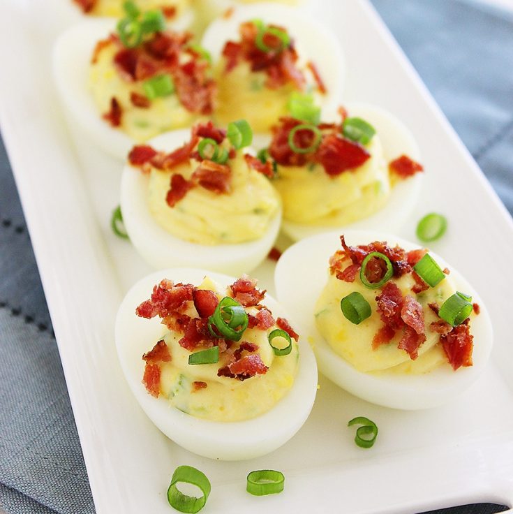 I love deviled eggs, and the little bit of bacon sprinkled on top is perfect! Thanks for a new take on an old favorite.