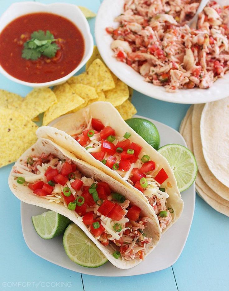 This zesty, easy slow-cooked chicken tastes great in tacos, burritos, salads, sandwiches and many more Mexican dishes. All you need are 2 ingredients and your favorite toppings!