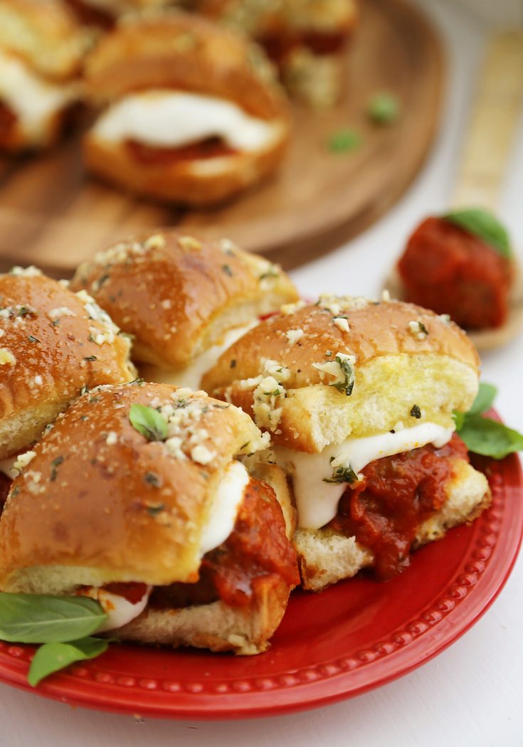 Wrapped up in a soft, garlic-butter bun, there is just about nothing more comforting than a meatball sub. But, who needs those monster portions? I loved the idea of making this comfort food classic mini, by using slider buns stuffed with one saucy, scrumptious homemade meatball and melty mozzarella cheese. Topped off with a mixture of garlic, Parmesan, butter and basil, and baked until gooey, weeknight dinners don’t get much better!