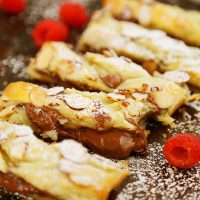 What results is the most magical, comforting goodness with flaky, golden layers and melt-in-your-mouth, sweet and creamy chocolate that oozes out of every bite. Dust on some powdered sugar, and serve it with your favorite berries.