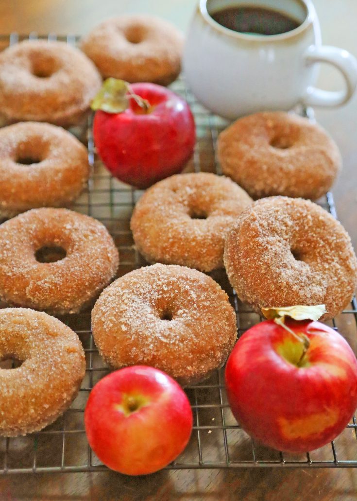 We have loved this homemade recipe for years. I love that they are baked and dipped in butter and cinnamon sugar, instead of fried! Every bite is full of intense apple cider flavor and warm cinnamon-sugar spiced goodness. Like fall in a handheld bite!