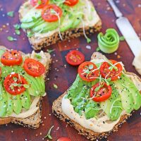 Clean, colorful and deliciously good-for-you hummus avocado toast! The most simple, savory bite for breakfast, lunch and healthy snacking. It’s ready in just 5 minutes! Top with your favorite veggies and seasoning, or follow this easy recipe with just 6 ingredients.