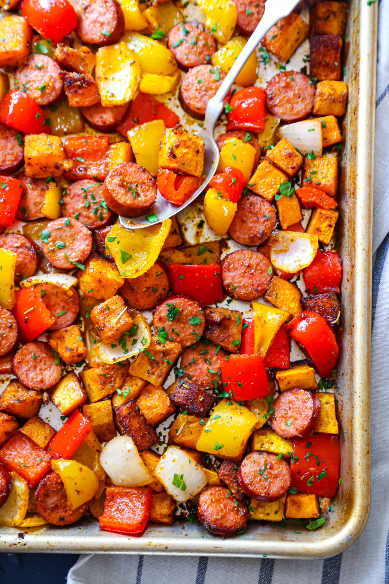 Sausage, Peppers + Butternut Squash Sheet Pan Dinner