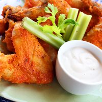 - Optionally, serve wings with dipping sauces such as ranch and/or bleu cheese dressing, and celery sticks.