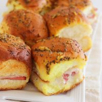 You’re going to love these delicious ham and Swiss sliders. They can be made a day ahead and kept in your fridge before baking, and you can definitely double the recipe for a big crowd. Also, feel free to swap in your favorite cheeses and deli meats if ham and Swiss aren’t your thing. Get creative!