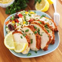 A squeeze of lemon over top makes this a perfect Mediterranean meal for weeknights or special dinners in! Just serve a salad alongside, or my One-Pan Greek Orzo with Tomatoes and Feta. A killer flavor combination!