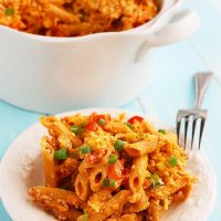 Spice up dinnertime with this simple, scrumptious buffalo chicken mac ‘n cheese with veggies, whole grain pasta and a zesty kick!