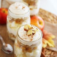 To make these pretty, perfectly delicious jars even easier, use canned apple pie filling and store bought whipped cream! I won’t judge.