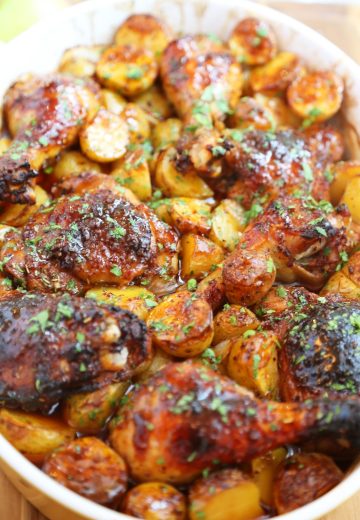 Roasted Apple Cider Chicken with Potatoes and Onions