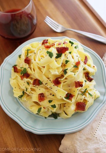 Lighter Fettuccine Alfredo with Bacon