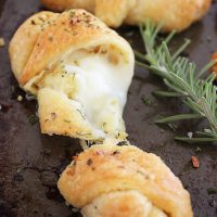 These little cuties are so simple to create, too – and would be fun for the kids in your kitchen! Just separate your crescent rolls into triangles on a floured surface, and brush them with a garlic butter. (If you’re short on time, you can use 1/4 tsp. garlic powder instead of freshly minced garlic.) Add half a string cheese to the widest end, roll up and tuck in the sides so all that cheesy goodness doesn’t escape! Brush on a bit more butter, then bake until golden and gorgeous.