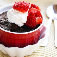 I like to top mine with homemade vanilla whipped cream (the recipe is included) and a spoonful of strawberries, but you could instead use caramel sauce and any fruit you like. As an easy weeknight treat or a fancy yet down-home dessert for dinner guests, there’s nothing better!