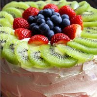 For years, this light yet decadent cake was my “plan A”, but still, while it’s fun to try new things, it remains one of my favorite summer desserts. Underneath all that dreamy whipped cream mixed with vanilla pudding is an angel food cake split in two, with a layer of strawberries in between, then topped with – you guessed it – more whipped cream and garnished with sliced fresh fruit and a sprinkle of blueberries. So yummy.