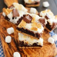 A crisp bottom layer of graham crackers rests under a chocolaty, chewy layer of brownies topped with soft marshmallows. Nestle in chopped up Hershey’s bars and crumbled graham crackers, bake ‘em for just a few more minutes, and you’ve got yourself a camp-style treat worthy of indulging in for any summer occasion!