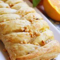 After baking for 25 minutes, the danish was puffed up and gorgeous golden brown. Topped with the orange glaze and a sprinkle of chopped walnuts, it was a little slice of heaven to start the day right! When I have family and friends visit this summer, I will definitely want to make this for them, and I know your family and friends would enjoy it, too.