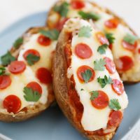 Hearty, crispy potato skins meet cheesy pepperoni pizza! A perfect party finger food, or fun weeknight meal and side dish.