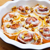There’s no stand mixer or fancy equipment required for this recipe, just your hands, some time and a little patience. For a first effort, I considered this recipe very simple for the good lookin’ and scrumptious cinnamon rolls that resulted, and I know that you’ll agree, too. The subtle pumpkin flavor combined with the spiced mixture of cinnamon, nutmeg and brown sugar is heaven on earth, and topped with a quick and easy maple cream cheese glaze, these rolls make for one lovely way to liven up your morning!