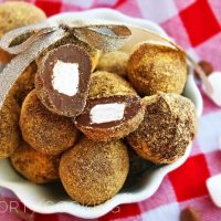 • Roll chocolate into 24 balls, stuffing a mini marshmallow into the center of each.*