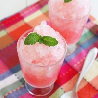 Sinking my spoon into a fruity slush of flaky ice crystals is one of my true summer joys! There’s nothing more instantly cooling than a cold treat, and in this house, we love a good granita. An easy mixture of fresh fruit juice and simple syrup just gets poured into a pan, frozen and scraped with a fork. What I don’t love, though, is all the sugar that a typical batch of granita is packing.