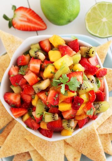 Strawberry Mango Salsa with Cinnamon-Sugar Tortilla Chips