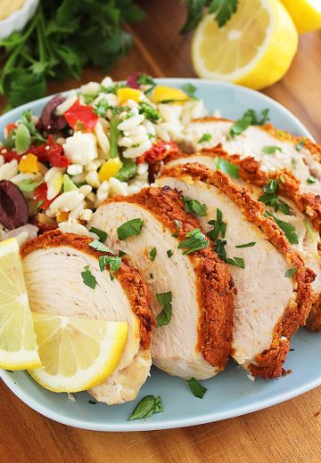 Baked Hummus-Crusted Lemon Chicken