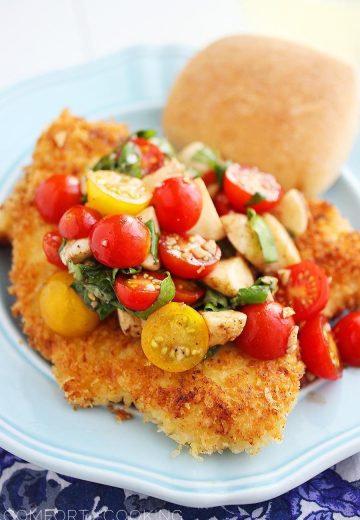Crispy Parmesan Chicken Cutlets with Tomato-Mozzarella Salad