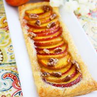 These puff pastry peach tarts with chopped pecans are flaky, buttery and full of Southern sweetness!