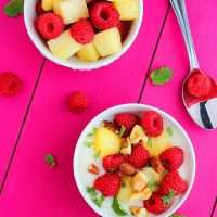 I love to snack on sweets, but sometimes it’s tricky to make choices that are both tasty and good for me. Yogurt with berries and nuts, a bit of vanilla and a pinch of fresh mint has been my go-to lately! Though it’s hardly a recipe, I figured I’d share the ingredients of this protein-packed, low-sugar breakfast, snack or dessert with you anyway!