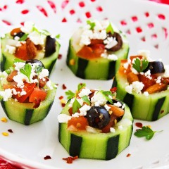 Scoop about 1 tablespoon of the Mediterranean salad into the cucumber cups. Garnish with additional parsley and feta, if desired.
