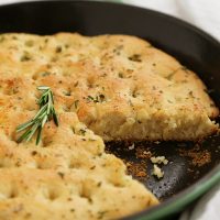 Place dough onto a floured surface and shape into a ball. With your fingers, press into the oiled skillet, covering all sides. Cover with a dry kitchen towel and place in turned-off oven for 30 minutes.