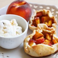 Place 1 tbsp. of graham cracker crumbs in the center of each crust. Divide peaches among crusts. Fold the edge of each crust up and over peaches. Sprinkle each pie with 1/2 tsp. of sugar.