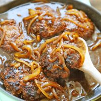 Return patties to the gravy and spoon gravy over top. Let simmer and warm up for a couple of minutes.